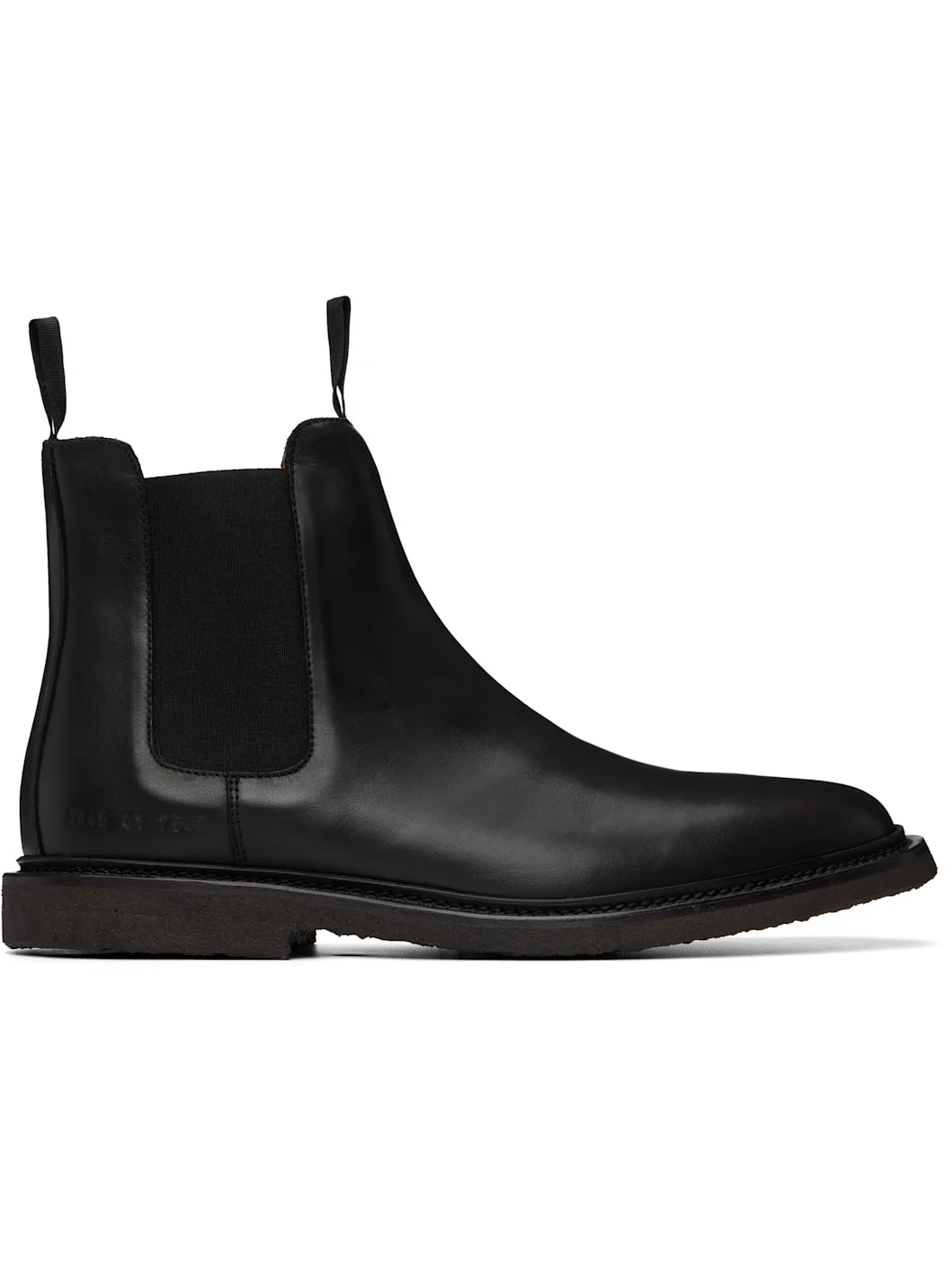 Ankle-high buffed leather Chelsea boots. · Pull-loops at collar · Elasticized gusset at sides · Signature series stamp at outer side · Topstitching at welt · Crepe rubber sole Supplier color: Black Upper: leather. Sole: rubber. Made in Italy 252133M223004