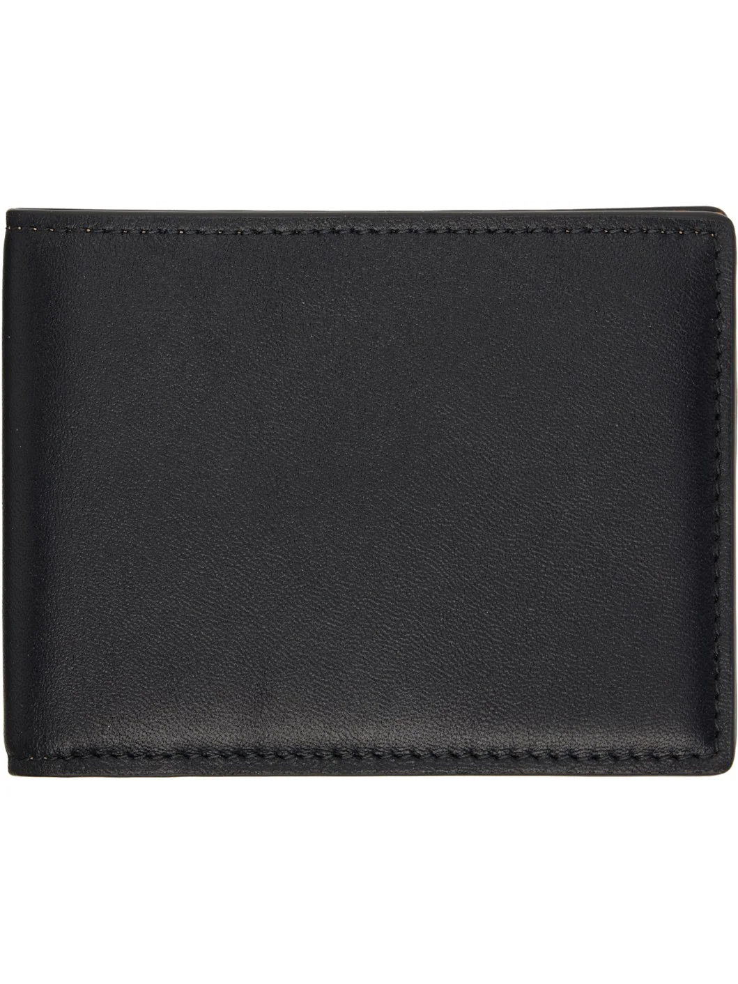 Buffed calfskin bifold wallet. · Logo stamp at back face · Six card slots · One note slot · Two patch pockets · Buffed leather interior · Plain-woven lining · H3.25" x W4.25" Supplier color: Black 100% calfskin. Made in Italy 252133M164004