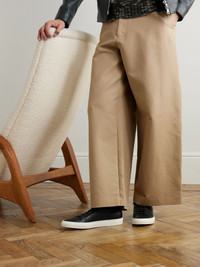 This black version of Common Projects' popular 'Original Achilles' style is a must-have for any sneaker aficionado. Made from supple yet durable full-grain leather, they're constructed in a streamlined tennis-shoe shape that will never date. Shown here with [A.P.C. polo shirt id814328], [Acne Studios jeans id670758]. This item is large to size; see Size & Fit notes. Size & Fit - Fits large to size. Take one size smaller than normal - Narrow at the top of the foot - European sizing Details & Care - Black full-grain leather - Gold stamped serial numbers, leather linings, rubber soles - Lace-up - Come with dust bag - Made in Italy