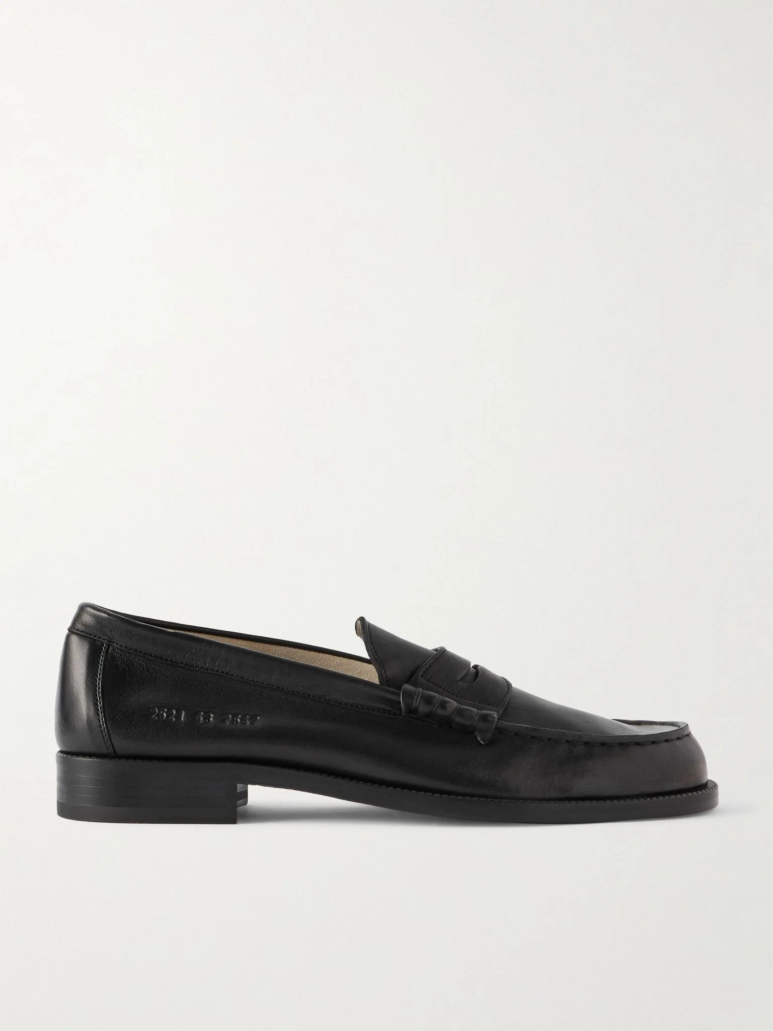 Common Projects' clean and streamlined approach to design results in footwear that feels both classic and modern. These loafers have been made in Italy from soft leather with traditional penny slots and debossed with the label's signature serial number at the sides. Large to size. See Size & Fit notes. Size & Fit - Fits large to size. Take a half/ full size smaller than normal - Only available in full sizes, go up to the nearest whole size if you take a half size - European sizing Details & Care - Black leather (Lamb)