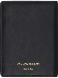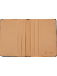 Buffed calfskin card holder in black. · Logo stamp at back face · Six card slots · Moire lining · H4" x W3" x D0.25" Supplier color: Black Calfskin. Made in Italy 251133M163005