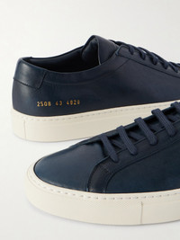 Fans return to Common Projects for the brand's clean, minimalist style and superior construction, both of which are demonstrated by these navy leather 'Original Achilles' sneakers. The design is one of the label's most popular, and has no detailing, save for the sleek signature golden stamp on the heels. Details & Care - Navy leather - Lace-up - Style number: 2508