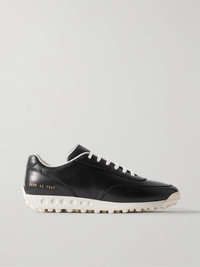 Inspired by retro runners, Common Projects 'New Track' style have spongey midsoles and gripped rubber outsoles. Made in Italy, they're cut from smooth nappa leather and debossed with gold-tone serial numbers at the sides. Consider them the sort of style you could wear for work and the weekend. Size & Fit - Fits true to size. Take your normal size - Only available in full sizes, go up to the nearest whole size if you take a half size Details & Care - Black leather (Calf) - Lace-up - Style number: 24987547