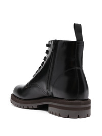 number-motif combat boots Common Projects presents a contemporary take on a timeless style with these combat boots. Boasting a classic black leather construction, this pair features a chunky silhouette thanks to the rubber lug sole underfoot while the brand’s signature numbers motif appears in a charming gold tone towards the heel. Highlights - Black - Calf leather - Smooth grain - Signature numbers motif - Round toe - Front lace-up fastening - Ankle-length - Pull-tab at the heel - Ridged rubber sole Made in Italy Composition Outer: Calf Leather 100% Lining: Calf Leather 100% Sole: Rubber 100% SIZE & FIT Measurement HEEL 1.57 in(4 cm) HEIGHT 5.51 in(14 cm) Sole height 0.78 in(2 cm)