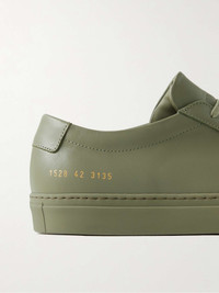 The 'Original Achilles' is Common Projects' most popular style and it's easy to see why. Combining the best in pared-back design with top-notch Italian construction, these army-green leather sneakers represent a contemporary approach to luxury. Size & Fit - Fits true to size. Take your normal size - Only available in full sizes, go down to the nearest whole size if you take a half size - European sizing Details & Care - Army-green and gold leather (Calf) - Lace-up - Designer colour: Moss - Come with dust bag - Style number: 1528