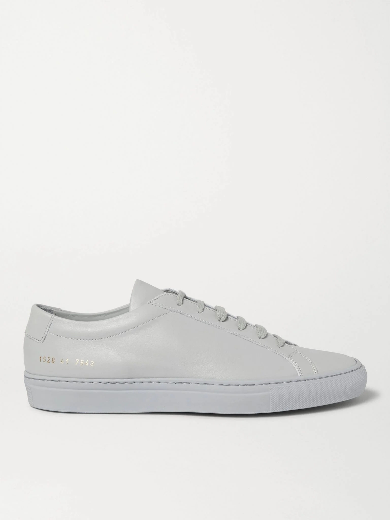 The 'Original Achilles' is Common Projects' most popular style and it's easy to see why. Combining the best in pared-back design with top-notch Italian construction, these light-grey leather sneakers represent a contemporary approach to luxury. Shown here with an [Acne Studios jacket id649192], [Neil Barrett T-shirt id634605] and [Casely-Hayford trousers id596223]. Size & Fit - Fits true to size. Take your normal size - Only available in full sizes, go up to the nearest whole size if you take a half size - European sizing Details & Care - Light-grey leather - Gold stamped serial numbers, leather linings, rubber soles - Lace-up - Come with dust bag - Upkeep and care