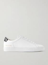 Common Projects' minimal designs go with just about anything - these 'Retro Classic' sneakers, for instance, work equally well with jeans or relaxed tailoring. Detailed with signature gold stamped serial numbers, they've been made in Italy from leather and have contrasting leather heel tabs. Size & Fit - Fits true to size. Take your normal size - Only available in full sizes, go up to the nearest whole size if you take a half size - European sizing Details & Care - White and black leather (Calf) - Lace-up - Style number: 2389