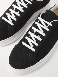 Common Projects' minimal designs go with just about anything - these 'Retro Classic' sneakers, for instance, work equally well with jeans or relaxed tailoring. Detailed with signature gold stamped serial numbers, they've been made in Italy from suede and have contrasting leather heel tabs. Size & Fit - Fits true to size. Take your normal size - Only available in full sizes, go up to the nearest whole size if you take a half size - European sizing Details & Care - White leather, black suede (Calf) - Lace-up - Style number: 2435