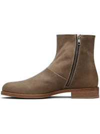 Taupe Waxed Leather Zipper Boots