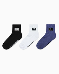 Cozy and cushioned, Converse Stacked Patch Quarter Socks are for Chuck lovers, by Chuck lovers. THE BASICS, MADE BETTER Step up your sock game with Converse Stacked Patch Quarter socks. A ribbed fit offers mid-height coverage, while a ventilated toe helps keep your feet cool. Converse branding shows off your style. WHY YOU SHOULD BE DOWN - Moisture-wicking fabric keeps you cool, dry, and comfortable - Mid-height and ribbed for fit - 1/2 cushion enhances comfort - Ventilation at toe for breathability - SKU: MC0524-001