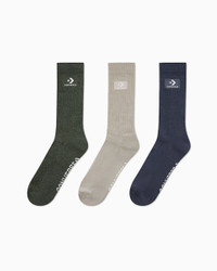 A classic crew with All Star style. CLASSIC COMFORT These crew socks are an everyday essential featuring logo detailing to complement your Chucks. They have soft cushioning in all the right places, a cooling, ventilated toe, and a supportive arch compression band for comfort in every step. WHY YOU SHOULD BE DOWN - Poly knit fabric is soft with added stretch - Crew length with ribbed cuffs - Mesh toe ventilation provides cooling breathability - Ribbed arch compression band helps with balance, and to help prevent or relieve pain - Cushioning on the bottom, heel, and toe adds soft comfort - SKU: MC0525-F9P