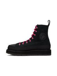 Ankle-high grained nubuck boots in black. · Round buffed leather cap toe · Lace-up closure · Webbing pull-loop at collar · Leather logo patch at inner side · Ortholite® footbed · Fleece lining in white · Foam rubber platform midsole · Treaded rubber outsole · Platform: H1.5 in Supplier color: Black/Prime pink Upper: leather. Sole: rubber.