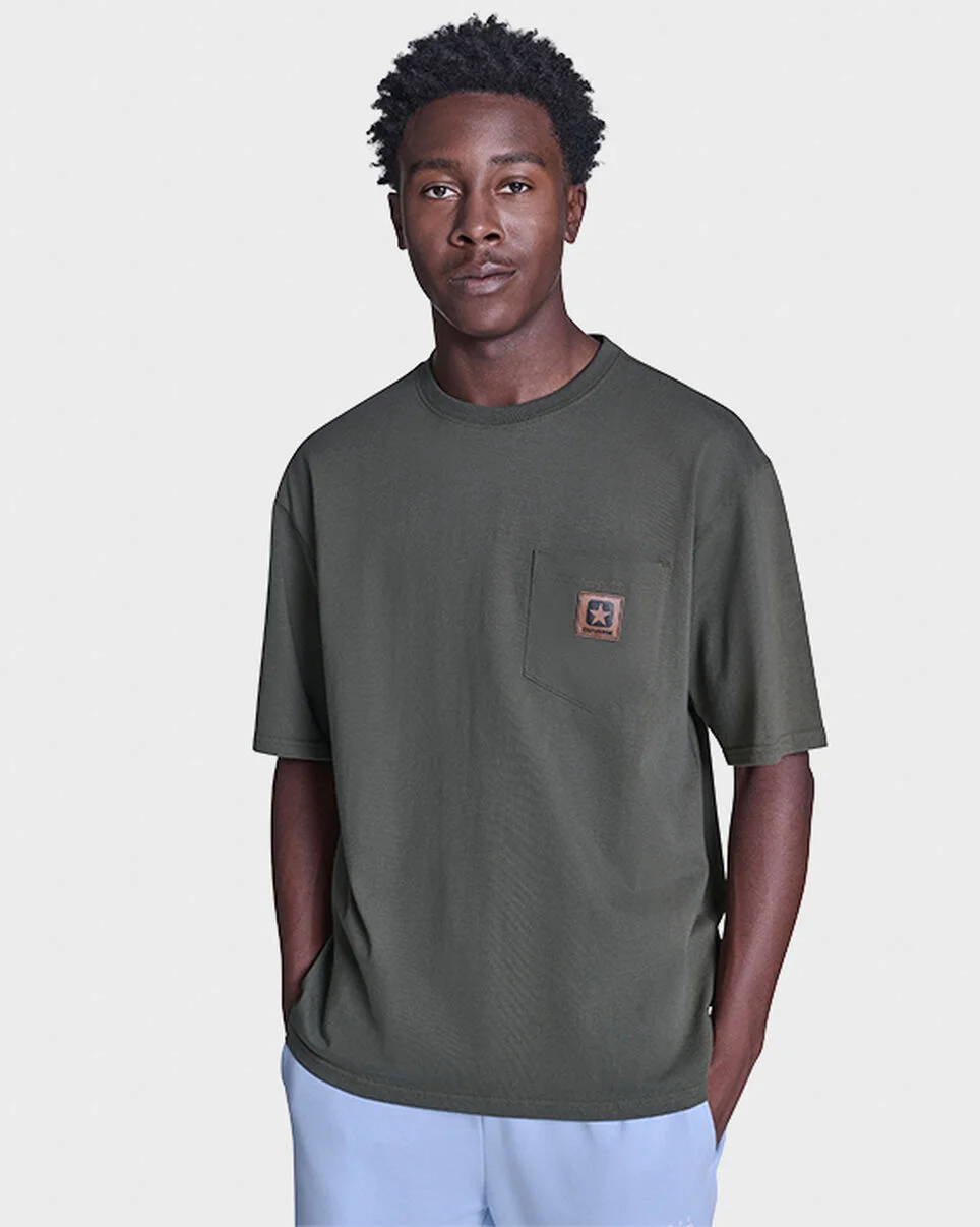 Soft from the start. SOFT & EASYGOING Brushed cotton jersey gives this tee a smooth, broken-in texture from day one. A relaxed fit and logo patch keep it effortless and timeless. WHY YOU SHOULD BE DOWN - Peached cotton jersey fabric for a soft, lived-in feel - A standard fit for a classic look - Chest pocket for when you need to store a little something - Box Star patch reps the Converse Legacy - 100% Cotton - SKU: CVM6T100-AUP