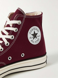 Converse's 'Chuck 70' sneakers stay true to the original high-tops - an iconic style that's been beloved by musicians, artists and creatives for decades. They're made from cotton-canvas that's accented with a striped rubber sole and rounded toe. Thanks to their comfort level, you'll probably want to invest in multiple colors. Size & Fit - UK 3 = US 3/EU 35 - UK 3.5 = US 3.5/EU 36 - UK 4 = US 4/EU 36.5 - UK 4.5 = US 4.5/EU 37 - UK 5 = US 5/EU 37.5 - UK 5.5 = US 5.5/EU 38 - UK 6 = US 6/EU 39 - UK 6.5 = US 6.5/EU 39.5 - UK 7 = US 7/EU 40 - UK 7.5 = US 7.5/EU 41 - UK 8 = US 8/EU 41.5 - UK 8.5 = US 8.5/EU 42 - UK 9 = US 9/ EU 42.5 - UK 9.5 = US 9.5/EU 43 - UK 10 = US 10/EU 44 - UK 10.5 = US 10.5/EU 44.5 - UK 11 = US 11 /EU 45 - UK 11.5 = US 11.5/EU 46 - UK 12 = US 12/EU 46.5 - UK 13 = US 13/EU 48 - Fits true to size. Take your normal size - Packaging reflects both men’s and women’s sizing Details & Care - Burgundy canvas - Lace-up - Designer color: Dark Beetroot/ Egret/ Black - Converse follows its own size guide, therefore the size stated on the box will differ from the one provided in our size chart. To receive your correct fit, please refer to Size & Fit notes - This item has been imported