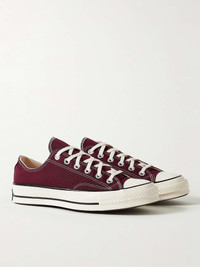 Converse's low-top sneakers are as classic as they come. This 'Chuck 70' pair is made from hard-wearing canvas and has comfortable, cushioned footbeds. Size & Fit - UK 3 = US 3/EU 35 - UK 3.5 = US 3.5/EU 36 - UK 4 = US 4/EU 36.5 - UK 4.5 = US 4.5/EU 37 - UK 5 = US 5/EU 37.5 - UK 5.5 = US 5.5/EU 38 - UK 6 = US 6/EU 39 - UK 6.5 = US 6.5/EU 39.5 - UK 7 = US 7/EU 40 - UK 7.5 = US 7.5/EU 41 - UK 8 = US 8/EU 41.5 - UK 8.5 = US 8.5/EU 42 - UK 9 = US 9/ EU 42.5 - UK 9.5 = US 9.5/EU 43 - UK 10 = US 10/EU 44 - UK 10.5 = US 10.5/EU 44.5 - UK 11 = US 11 /EU 45 - UK 11.5 = US 11.5/EU 46 - UK 12 = US 12/EU 46.5 - UK 13 = US 13/EU 48 - Fits true to size. Take your normal size - Packaging reflects both men’s and women’s sizing Details & Care - Burgundy canvas - Lace-up - Designer color: Dark Beetroot/ Egret/ Black - Converse follows its own size guide, therefore the size stated on the box will differ from the one provided in our size chart. To receive your correct fit, please refer to Size & Fit notes