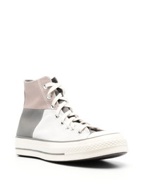 Chuck 70 Crafted Patchwork sneakers Highlights - Light grey/light blue/light pink - Cotton - Logo print to the side - Contrasting toecap - Round toe - Front lace-up fastening - Ankle-length - Flat rubber sole Imported Composition Outer: Cotton 100% Lining: Cotton 100% Sole: Rubber 100% SIZE & FIT Measurement HEEL 1.37 in(3.5 cm) HEIGHT 4.52 in(11.5 cm) Sole height 1.37 in(3.5 cm)