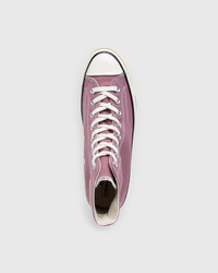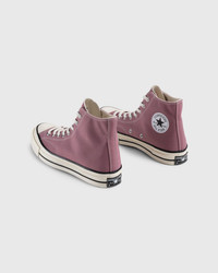 No matter the current trend, the Chuck 70 never goes out of style. Recently, the iconic Converse silhouette has been updated with modern details that improve the overall design and simultaneously celebrate the original model. Minor changes include a heavier canvas, vintage stitching, slightly higher rubber foxing, more substantial rubber toe cap, and advanced cushioning in the midsole that enhances comfort. Still, the Chuck 70 looks like the same classic shoe from decades ago. Size & Fit Runs a half size large. Product Details Canvas upper. Vintage stitching. Metal eyelets. Rubber foxing. Rubber toe cap. Vulcanized rubber sole. Advanced cushioning in the midsole for comfort. Branded insoles. All Star patch and license plate logo.