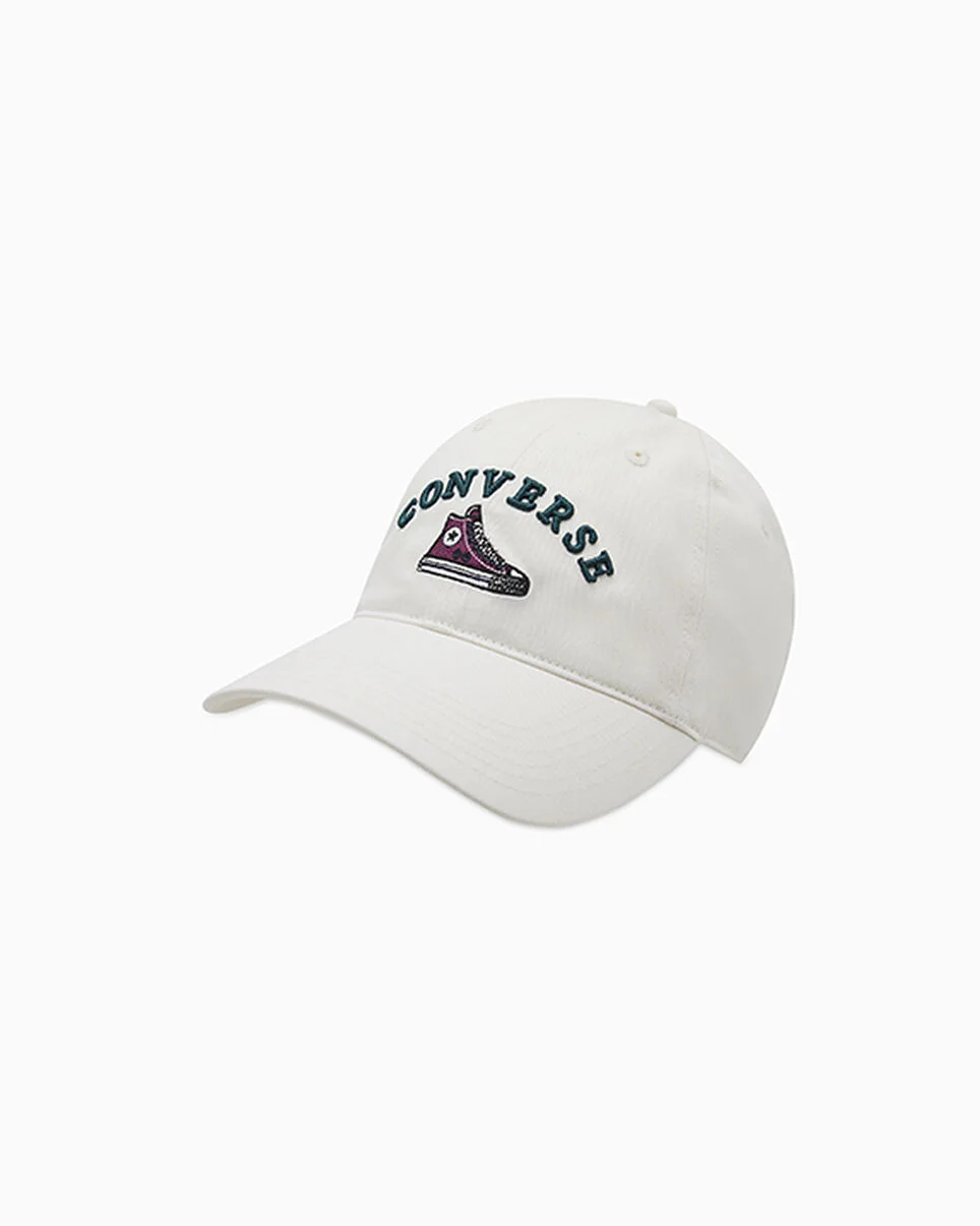 A relaxed spin on the classic baseball cap. HEAD-TO-TOE LEGEND Complement your Chucks with a classic baseball hat, designed with a relaxed, lower profile and an adjustable strap-back closure for a comfortable fit. WHY YOU SHOULD BE DOWN - Constructed of lightweight cotton twill - 6-panel design for a that timeless look and feel - Curved brim and built-in sweatband help you stay cool - Adjustable strap-back helps you get a customized fit - Chuck Taylor embroidery on the front matches your kicks - SKU: MA5710-W2Y