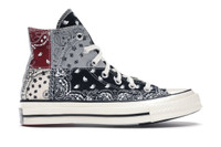 The Converse Chuck Taylor All-Star 70 Hi Offspring Paisley Black is part of a collaboration between Converse and Offspring, a UK-based sneaker retailer. The All-Star 70 Hi Offspring Paisley Converse Chuck Taylor Black features Chuck Taylor design elements, such as the high-top silhouette, rubber toe-cap, and white rubber sole. These elements give the shoe a look that is both versatile and functional. The upper is constructed with high-quality canvas, ensuring both durability and comfort. The canvas upper is soft yet sturdy, while the cushioned insole provides a comfortable fit for all-day wear. We think that the most notable feature of the Converse Chuck Taylor All-Star 70 Hi Offspring Paisley Black is its paisley print, which covers the entire upper of the shoe. The print is a bold and eye-catching contrast to the shoe's black canvas material, creating a unique and striking look that stands out. The Converse Chuck Taylor All-Star 70 Hi Offspring Paisley Black was released on October 8th, 2020 at a retail price of $90. - Style 169880C - Colorway Black/Multi-Egret - Retail Price 90 - Release Date 2020-10-08 - Featured false