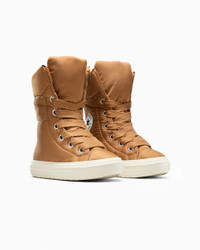 Plush, pillowy boots feel like a warm hug for your feet. PUFFED UP Toasty as a sleeping bag, cool as your favorite Chucks. These cozy puffer boots bring the heat—in style and function. Plus, oversized details give every 'fit a dramatic edge. WHY YOU SHOULD BE DOWN - A water-repellent, insulated polyester upper helps keep you warm and dry - OrthoLite cushioning helps provide optimal comfort - Cozy fleece lining helps lock in warmth - Traction rubber outsole helps provide grip on wet and slippery surfaces - Iconic Chuck Taylor ankle patch and All Star license plate - SKU: A17644C