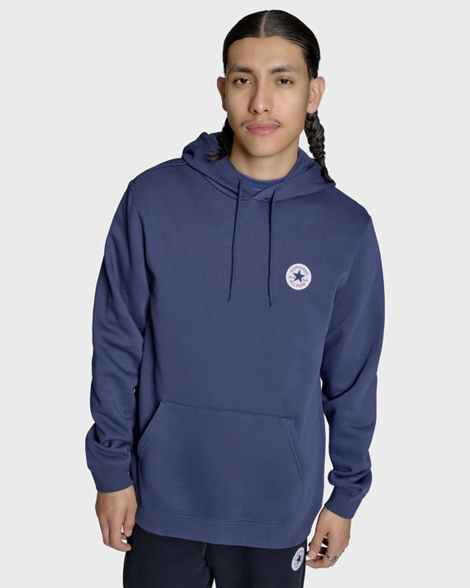 This hoodie brings classic, wear-everywhere style. THE ONE THAT ALWAYS WORKS This hoodie hits the sweet spot—soft, easy, and classic without trying too hard. Plus, it comes in a range of versatile, go-with-everything colors, so you can switch it up or stick to your favorites. WHY YOU SHOULD BE DOWN - Soft, standard fit hoodie for around-the-clock comfort - Easy-access front kanga pocket - Hood features adjustable drawcords - Chuck Taylor All Star patch delivers heritage style - 80% cotton, 20% polyester - SKU: CVM5K981-NVY