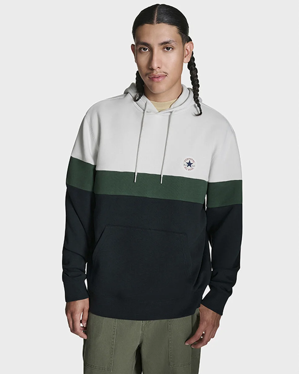 A standout hoodie with fine lines and contrast hues. COLOR BLOCK COMFORT A timeless silhouette, updated with a twist. This pullover takes the familiar and flips it, adding contrast color for a style that’s anything but standard. WHY YOU SHOULD BE DOWN - Cotton-polyester fabric feels soft against your skin - Standard fit keeps it classic - Color block design for standout style - Chuck Taylor patch closes out the look - 80% Cotton, 20% Polyester - SKU: CVM5H811-GYM