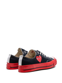x CdG Chuck Taylor 70 Low sneakers The Chuck Taylor is reimagined with the iconic heart-and-eyes motif on the sides in this collaboration from Comme Des Garcons Play and Converse. Underfoot, a cushioned sole provides a supportive fit. Highlights - Black/red - Canvas - Signature heart print - Contrast stitching - Round toe - Front lace-up fastening - Branded insole - Rubber sole - These styles are supplied by a premium sneaker marketplace. stocking only the most sought-after footwear, they source and curate some of the most hard to find sneakers from around the world. Imported Composition Outer: Canvas 100% Sole: Rubber 100%