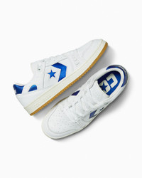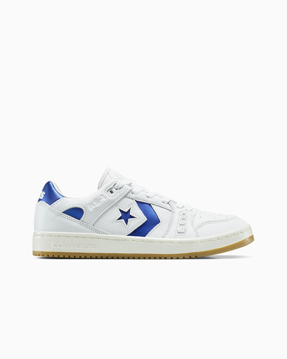 The AS-1 Pro arrives in fresh materials and colors. FRESH METALLICS. CLASSIC SABLONE. Alexis Sablone's AS-1 Pro ratchets up boardfeel and durability with unrivaled precision and style. Now it arrives in durable leather and bold metallics, ready to hit your board or the street. WHY YOU SHOULD BE DOWN - Leather upper helps provide optimal durability and a clean look - Innovative CX cushioning combines with a skateboarding-tuned cupsole to help provide impact absorption - A herringbone outside helps give you optimal traction - Bold colors refresh your rotation - Metallic Star Chevron reps the Converse legacy of skate and street style - SKU: A11936C