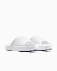 Introducing ultra-comfy slides, Converse style. CHUCKS OFF, SLIDES ON Slip into these cushy slides and get ready to chill. Post-gym cooldowns, beach days, or when you dress to manifest that dream vacation, they're up for any agenda—or lack thereof. WHY YOU SHOULD BE DOWN - Allover foam design nhelps provide lightweight cushioning without the bulk - Wide footbed ensures a comfortable fit - Minimalist branding makes it more your style and less ours - A pinstripe midsole nods to the iconic Chuck Taylor - Iconic All Star license reps the Converse legacy - SKU: A12173C
