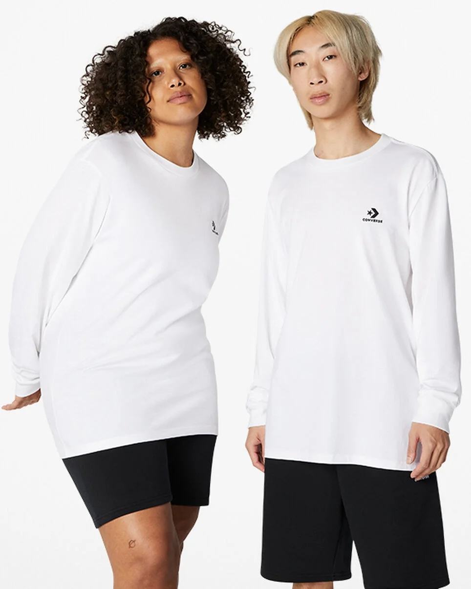 Long sleeve tee with embroidered branding and easy-to-style details, designed for anyone. ALL STAR FIT Easy to wear with classic details, the Embroidered Star Chevron Long Sleeve T-Shirt gives you an everyday fit to style your way, no matter who you are. A left chest embroidered Star Chevron adds a standout touch, with ribbing at the cuffs and neckline for fitted comfort. WHY YOU SHOULD BE DOWN - Standard fit, cotton long sleeve tee designed for anyone who wants to wear it - Embroidered Star Chevron on left chest - Ribbed cuffs and neck for comfortable fit - Extended sizing available - 100% COTTON - SKU: 10023872-A01