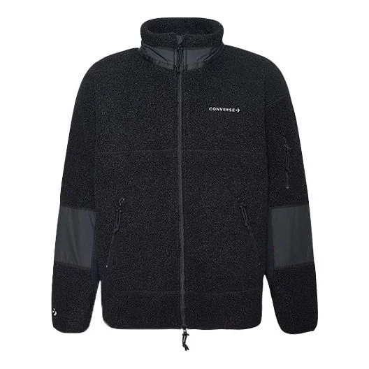 Men's Converse Splicing Stay Warm Stand Collar Jacket Black 10018039-A01