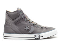 Combining design cues from the OG Chuck Taylor and the Weapon 86 basketball shoes, the Converse Poorman Weapon Hi was released in collaboration with Undefeated. Taking inspiration from bomber jackets used in aviation, these shoes have a nylon upper and bright orange lining, including a Velcro Star Chevron logo to accent the look. Undefeated's five-strikes adorns the midfoot for a signature vibe. SKU: 123776 Colorway: Grey