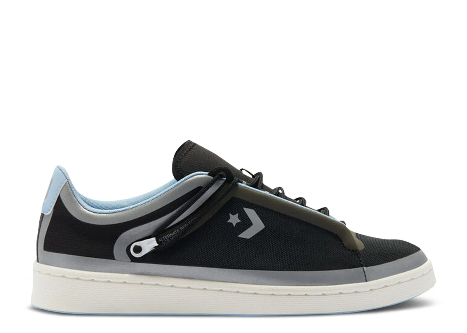 The Pro Leather Low 'Seam Tape - Black Serenity' emerges with a look inspired by technical outerwear. The upper is built with tricot polyester, finished in black and supported by a ghillie lacing system. The shoe's neutral base is highlighted by light blue on the collar lining and heel patch, while a nylon tongue and reflective taped seams add to the aesthetic. Underfoot, the off-white rubber cupsole incorporates a brick pattern on the outsole for traction. SKU: 169524C Colorway: Black/Serenity/Egret Release Date: 10/21/20