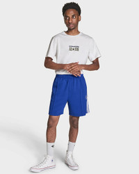 All the retro energy, cut short for everyday wear. STRIPES IN PLAY Cut for warmer days and easy moves, these shorts bring retro-cool vibes with contrast stripes and a smooth, lightweight feel. WHY YOU SHOULD BE DOWN - Polyester fabric for that classic track short look and feel - Relaxed fit provides easy movement - An elastic waistband with an adjustable drawcord helps you find the right fit - Chuck Taylor All Star patch on the left leg reps the legacy - 95% Polyester, 5% Elastane - SKU: CVM6B011-BLU