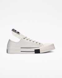 Fashion iconoclast Rick Owens references his past DRKSHDW designs on a limited-edition Chuck 70, distorting and reshaping the classic lines of our most iconic silhouette. SHATTER THE MOLD. Break from convention with the TURBODRK Chuck 70, created by one of fashion’s essential iconoclasts Rick Owens. The subversive design both celebrates and distorts the lines of our best-ever silhouette—literally stretching the possibilities with an elongated tongue and applying the first square-toe execution in its century of existence. The cotton-twill upper and refined finishes add polish and couture-like sophistication to the design’s edgy look and exaggerated features. It’s the bold reinvention of a street classic. And a punk rebellion against the ubiquitous. Rick Owens crafts a Chuck 70 unlike any other. WHY YOU SHOULD BE DOWN - Limited-edition low top sneaker designed by fashion iconoclast Rick Owens in waxed cotton twill. - The timeless silhouette distorted with a punk couture spin. - Molded rubber dual toe design featuring superimposed square grill toecap. - Bold elongated tongue emphasizes the distinct style of classic Chucks. - Custom DRKSHDW license plate and wrap around TURBODRK woven label. - SKU: 172345C
