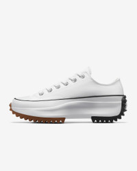 Available in a low top for the first time, the Run Star Hike's chunky platform and jagged rubber sole put an unexpected twist on your everyday Chucks. Details like a canvas build, rubber toe cap and Chuck Taylor ankle patch stay true to the original, while a molded platform, two-tone outsole and rounded heel give off futuristic vibes. Benefits - Low-top platform sneaker with canvas upper - OrthoLite insole for cushioning. - Two-tone exaggerated outsole tread. - Colorblocked design. - Shown: White - Style: 168817C-102