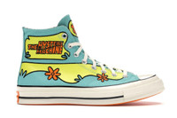 Inspired by the van from the cartoon show Scooby-Doo, the Converse Chuck Taylor All-Star 70 Hi Scooby-Doo The Mystery Machine is a sneaker from the Scooby-Doo x Converse Chuck 70 High collection. Dressed in Pool Blue, Sulfur Spring, and a retro-looking Orange, this high-top sneaker features a canvas upper with all the colors and graphics of the Mystery Machine Van from the cartoon classic. Other details include the Converse circle patch logo on the medial, metallic Silver eyelets, White laces, and an Orange license plate with 'SCBYSNK' branding on the left shoe heel. The upper rests on a White vulcanized midsole with a Black horizontal stripe and an Orange waffle rubber outsole. The Converse Chuck Taylor All-Star 70 Hi Scooby-Doo The Mystery Machine was released on May 15th, 2020. Initially, it retailed at $110. - Style 169072C - Colorway Pool Blue/Sulfur Spring-Egret - Retail Price 110 - Release Date 2020-05-15 - Featured false