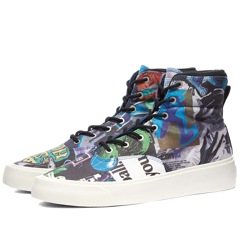 Converse celebrates the history of basketball with the ‘Beat the World’ Skid Grip. A colourful take on the classic Chuck’s, they feature a vibrant upper decorated with vintage ads, logos and yearbook photos for a look that’s sure to turn heads with every wear. - Canvas Uppers - Rubber Toe Cap - OrthoLite Insole - High Foxing Tape - Gum Rubber Outsole