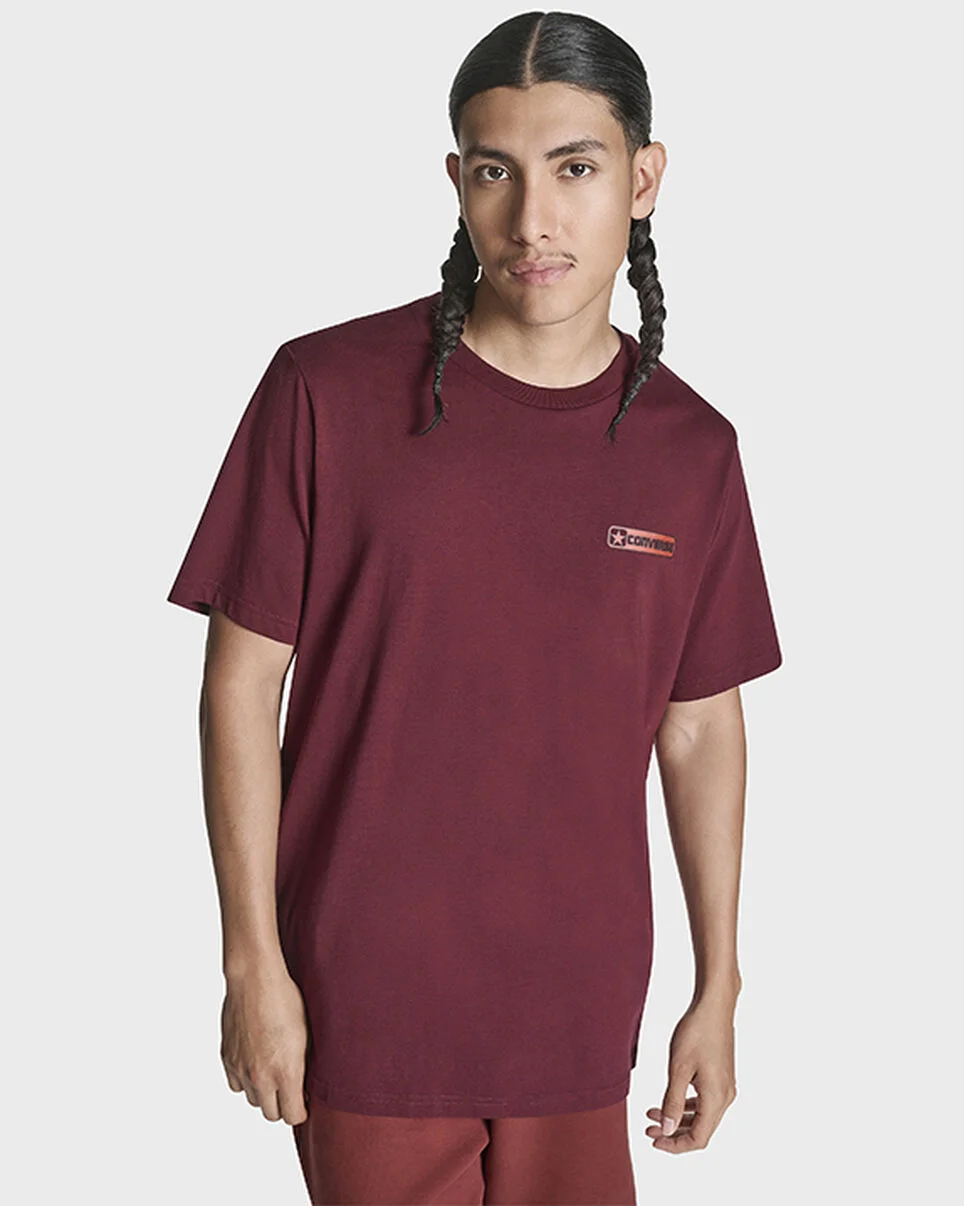 A t-shirt with 5 points of view. A LAYERED APPROACH This homage to old school branding hits the sweet spot between easy comfort and bold style. WHY YOU SHOULD BE DOWN - Cotton construction for everyday comfort - Standard fit for a relaxed, easy feel - Converse logos on the front and back - Seasonal colors to mix into your wardrobe - 100% Cotton - SKU: CVM5T814-MJR
