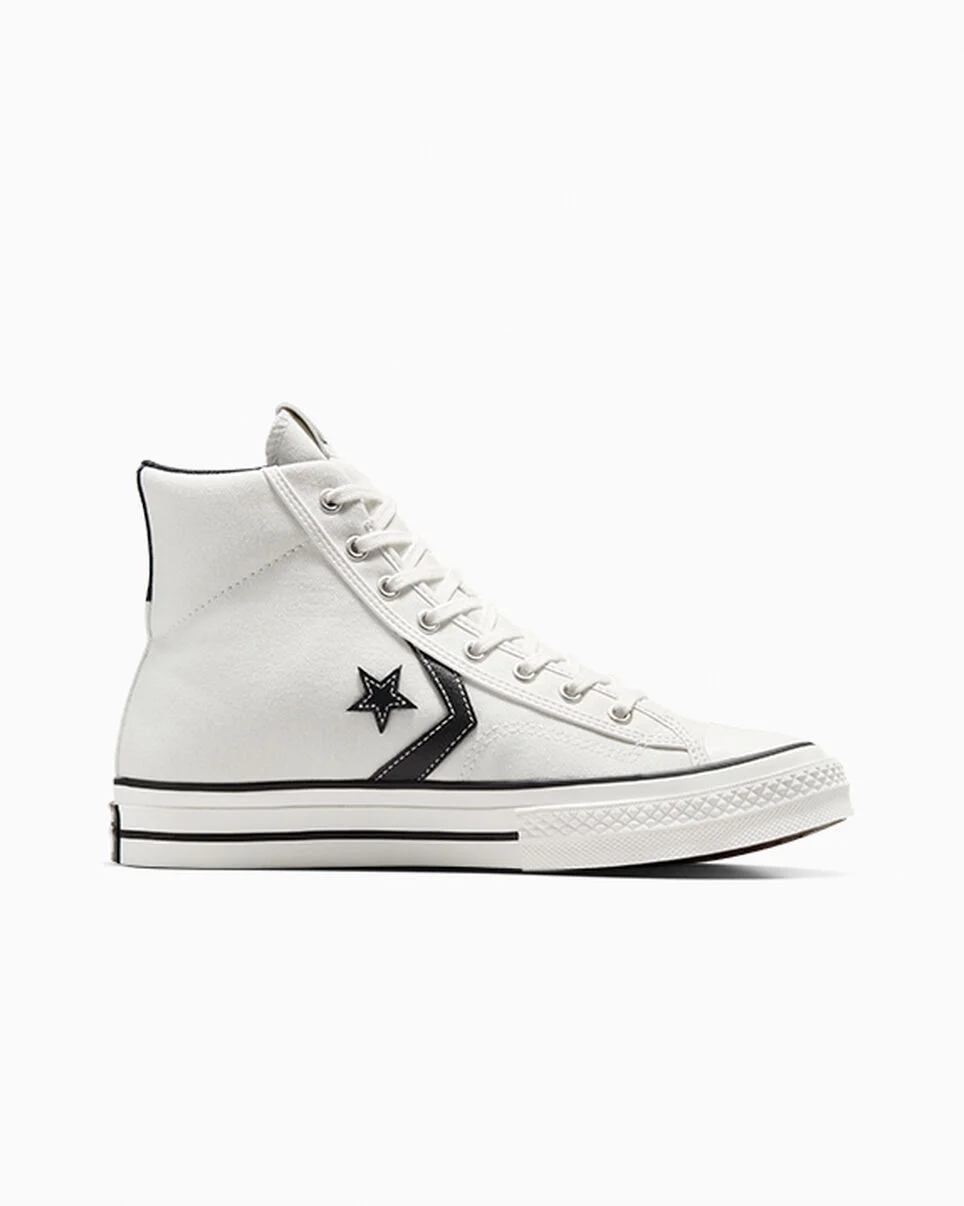 Old-school high-top vibes. Next-level comfort. This Star Player 76 gives you both. DURABLE AS EVER, HIGHER THAN EVER Now in a high top, the Star Player 76 takes casual style to new heights. More padding—and a wider fit than classic Chucks—make it comfortable enough to keep up with your daily grind. WHY YOU SHOULD BE DOWN - Durable canvas upper with stitching based on vintage Converse sport styles - OrthoLite cushioning helps provide optimal comfort - A padded collar—and more room than classic Chucks—helps offer everyday comfort - Timeless colors give you versatile style - Leather Star Chevron reps the Converse legacy of sport and street style - SKU: A10515C