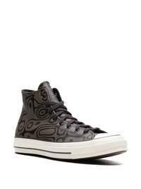 Chuck 70 "Wonka - Chocolate Swirl" sneakers Highlights - Brown - Front lace-up fastening - Swirl print - Ankle-length - Round toe - Flatform sole - These styles are supplied by a premium and authenticated sneaker marketplace. stocking only the most sought-after footwear, they source and curate some of the most hard to find sneakers from around the world. Imported Composition Sole: Rubber 100% Lining: Leather 100% Outer: Leather 100%