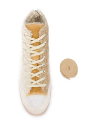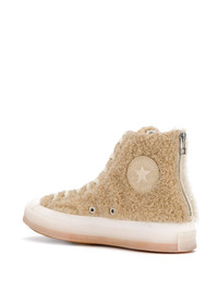 x Clot Chuck 70 Hi "Ice Cold" sneakers Cream Chuck 70 fleece hi-top sneakers from Converse featuring a front lace up detail, a back zip fastening, contrasting panels, a branded rear patch, a patent toe cap and a spare set of laces. Imported Composition Sole: Rubber 100% Lining: Cotton 100%, Modacrylic 100% Outer: Modacrylic 100% SIZE & FIT Measurement Sole height 0.98 in(2.5 cm) HEIGHT 4.33 in(11 cm)