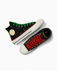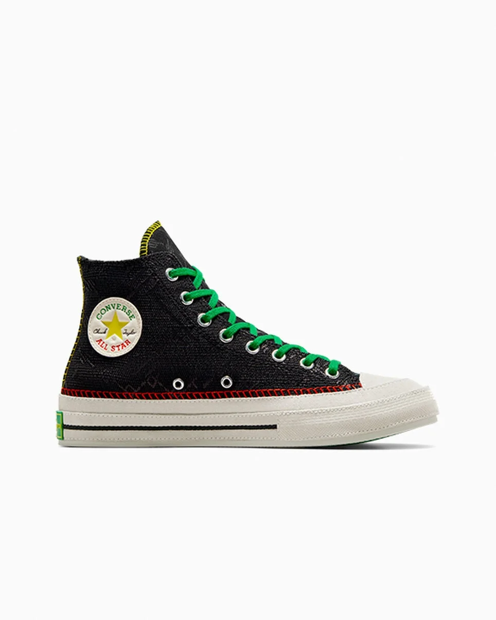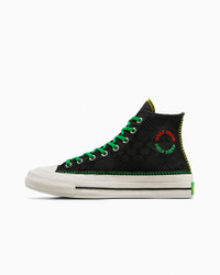 Daily Paper blends cultural heritage with classic style on the premium Chuck 70 high top. CONVERSE X DAILY PAPER Daily Paper elevates their detail-driven blend of contemporary street style and African heritage with a limited-edition Chuck 70. A black canvas, embroidered all-over shield logo print and hits of Pan-African colors wrap the iconic Chuck 70 in Daily Paper’s distinctive aesthetic. WHY YOU SHOULD BE DOWN - Embroidered all-over-print with Daily Paper logo on upper - Multi-colored decorative stitching on the lateral, medial and heel stay - Daily Paper patch on right and left lateral - Daily Paper branded sock liner - Multi-colored outsole - SKU: A12069C