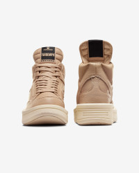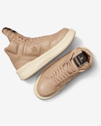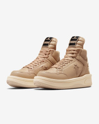 The ongoing collaboration with DRKSHDW transforms another court icon: the Converse Weapon. With a rebellious mindset to challenge the ubiquitous and break convention, Rick Owens exaggerates the proportions and distorts the lines of the legendary basketball sneaker. The result is a distinct design that sits at the intersection of hoops style and subversive fashion, bringing the edge of DRKSHDW boots to an iconic ‘80s basketball high top. Benefits - Limited-edition high-top sneaker designed by Rick Owens - Leather upper with an elevated platform midsole - Exaggerated proportions including an elongated tongue and blown-out midsole - CX Foam midsole with supportive midfoot side pods; foam molded toe and rubber molded heel - Custom Rick Owens wrap-around woven label - Shown: Cave Stone - Style: A06757C-230