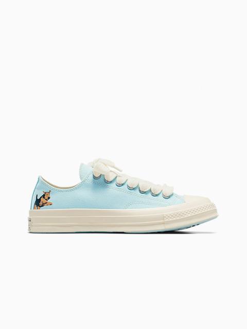 A new minimalist GOLF le FLEUR* Chuck 70 design from Tyler, The Creator featuring the brand’s mascot, Darryl. CONVERSE x GOLF le FLEUR* For our latest collaboration with GOLF le FLEUR*, the brand’s mascot Darryl gets his own signature Chuck 70. The minimalist design is available in five colors from the distinctive GOLF le FLEUR* palette, each with a subtle Darryl graphic on the upper—and not so subtle bell hop graphic on the outsole. Classic. Irreverent. Elevated. Introducing the Darryl Chuck 70 from Tyler, The Creator and GOLF le FLEUR*. WHY YOU SHOULD BE DOWN - Limited-edition low-top sneaker designed by Tyler, The Creator - 12 oz canvas upper with custom Darryl graphic on the lateral quarter panel - 8 oz cotton lining - Custom GOLF le FLEUR* branded outsole with bell hop graphic - Silver eyelets with flat spun 18 mm fat lace in winter white - SKU: A12143C