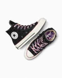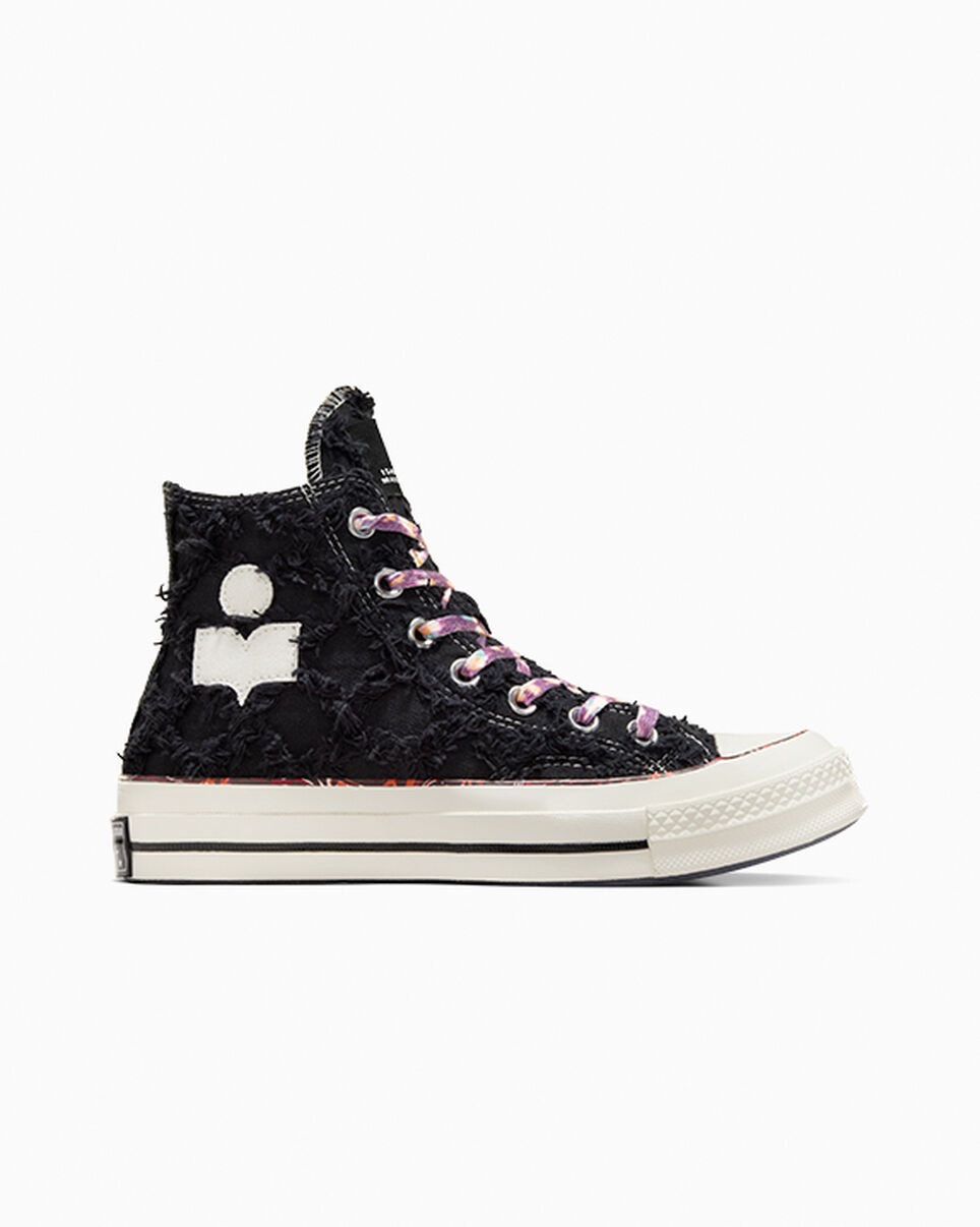 The French fashion icon blends cool luxury style cues with classic Converse details on the Chuck 70. CONVERSE X ISABEL MARANT The French fashion icon puts her effortlessly elegant spin on the premium Chuck 70. Blending effortless luxury style cues with classic Converse details, the limited-edition design captures the essence of Isabel Marant’s laid back but elevated aesthetic. Sophisticated materials, raw edge overlays and vibrant swirls of color create a distinctive carefree vibe. WHY YOU SHOULD BE DOWN - Limited-edition high top sneaker designed by Isabel Marant - Frayed cotton and polyester jacquard upper with multi-colored marble transfer print pinstripes - Translucent outsole with matching multi-color print - Isabel Marant branded tongue label - Printed and debossed Chuck Taylor patch - SKU: A10799C