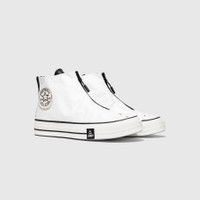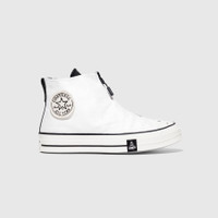 - A00711C - White/Black/Black - Limited-edition high-top sneaker designed by visual artist Joshua Vides - 12 oz organic cotton canvas upper with 3D printed polka dots and hook and loop fastener ankle patches - Tyvek® shroud with front zip closure and hook and loop fastener ankle patch - Leather tongue and heel stay with heel loop - Spare cotton lace with measuring tape markings to scale