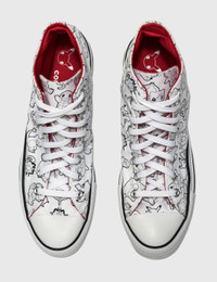 - Converse - Converse x Pokémon Chuck Taylor All Star - Collaboration celebrating Pokémon 25th anniversary - High top sneaker - Round toe - Rubberized toe cap - Lace-up closure - Textile upper - All-over Pokémon graphics print - Glossy Poké Ball graphic appliqué at sidewall - Logo appliqué with Poké Ball detail at heel - Exposed, contrast lining in red - Waffle, rubber sole - Color: White/Black/University Red - Material: 100% Textile; 100% Rubber