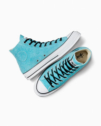 Our iconic collaboration with the California sportswear pioneers continues with a distinctive suede Chuck 70, featuring an unvarnished foxing and custom details. CONVERSE x STUSSY Our ongoing partnership with the pioneers of California sportswear is back with a new Chuck 70—weaving their iconic West Coast aesthetic into the premium Converse icon. With custom collaboration details, an unvarnished foxing nodding to classic Chucks and a rough, hairy suede upper that’s out of the ‘90s, the design pulls together distinct elements from the past to create a bold street style for the next generation. WHY YOU SHOULD BE DOWN - Limited-edition high-top sneaker designed by Stussy with a hairy suede upper - “Blank” hairy suede Chuck patch at exterior medial and embroidered star at lateral - Hidden classic heat transfer Chuck patch at interior medial - Custom Stussy “All Star” woven label at tongue with Converse All Star logo embroidered underneath - Spare lace in white - SKU: A07663C