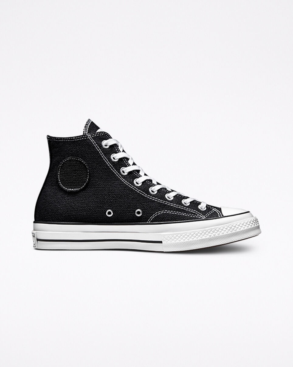 A black hemp upper and unvarnished foxing blend archival Converse style with Stussy’s West Coast DNA, nodding to the original hemp Chucks from the ‘90s. CONVERSE x STUSSY The California sportswear pioneers revisit their coastal roots and celebrate archival Converse style on a new Chuck 70, referencing the infamous black hemp Chucks from the ‘90s to create a distinct West Coast look. Custom details like the embroidered star logo and unvarnished foxing punctuate the collaboration, highlighting the legacy of Converse and classic Chucks in in SoCal style. WHY YOU SHOULD BE DOWN - Limited-edition high-top sneaker designed by Stussy - 100% hemp upper in black with a combination of tonal and contrast stitching - "Blank" hemp Chuck patch at exterior medial, hidden Chuck patch at interior medial, and embroidered star on lateral - No varnish foxing—a nod to classic Chucks - Spare laces in black - SKU: A01765C